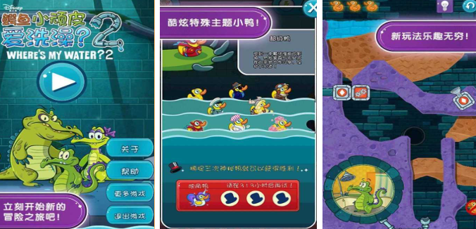 鱷魚小頑皮愛洗澡2的卡通畫風(fēng)特別可愛,主角小鱷魚蹲在浴缸里,眼巴巴等著水過來,玩家的任務(wù)就是幫它把水引過去,玩法基于真實(shí)的水流物理效果,水會(huì)往低處流遇到泥土?xí)晃?,遇到巖石會(huì)被擋住,得用各種道具和操作規(guī)劃水路,小鱷魚喝到水后會(huì)開心地噴水,還會(huì)做出搓澡吹泡泡的動(dòng)作,特別治愈。