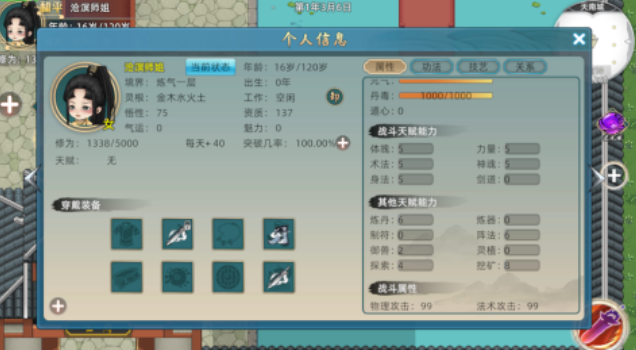 這是款傳承千年歷史的國(guó)風(fēng)背景修真游戲,玩家可建造一個(gè)傳承千年的修真世界家族,擁有水墨的美術(shù)表現(xiàn)和特殊的修真元素,玩家可身臨其境感受修真家族的發(fā)展史,極高的隨機(jī)性和開(kāi)放世界的地圖讓人沉迷,主打經(jīng)營(yíng)冒險(xiǎn)的游戲設(shè)定也顯得十分有趣,自由管理修仙家族的設(shè)定代入感不錯(cuò)。
