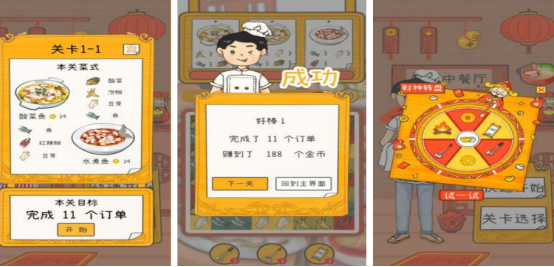 游戲擁有無比精美的畫風,將各種中式餐廳的樣貌打造的淋漓盡致,玩家作為小廚師,將同一種食物打造出不同的美味佳肴,隨著時間推移,有機會成為真正的行政總廚,并創(chuàng)作屬于你的夢幻中餐廳。將在這里享受緊張又刺激的廚房對決,另外也有三消模式給小伙伴們帶來無限樂趣,只有爭分奪秒打造出美味佳肴,才能夠在眾多大廚當中脫穎而出。