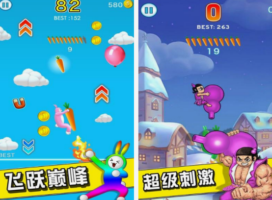 這款比較休閑又有趣的,不僅可看到可愛的兔子人形象,還有葫蘆兄弟這樣的角色,在充滿著緊張刺激的游戲當中,需要控制著角色,利用點擊屏幕,上下不斷移動的方式,去挑戰(zhàn)自己,利用不斷吃掉的金幣以后,可幫助玩家獲得很好的獎勵。只有能夠通過不斷飛躍以后,走上巔峰的情況下,就可以讓自己擁有很高的成就。