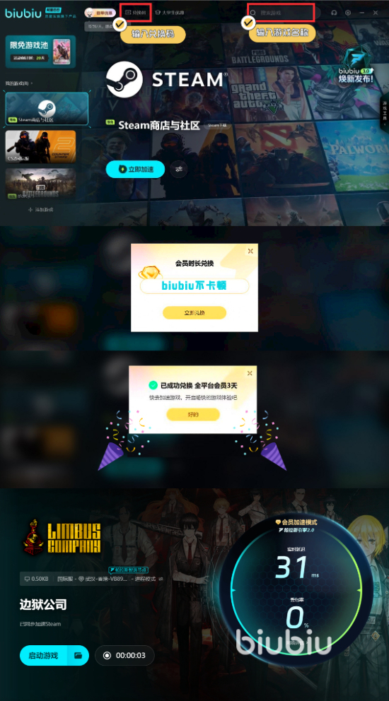 現(xiàn)在下載biubiu加速器,新用戶不僅可以免費享受24小時的加速時長,還能體驗到游戲暢快的低延遲和不卡頓!更驚喜的是,輸入兌換碼【biubiu不卡頓】即可獲得額外3天加速時長,讓你玩得更盡興!