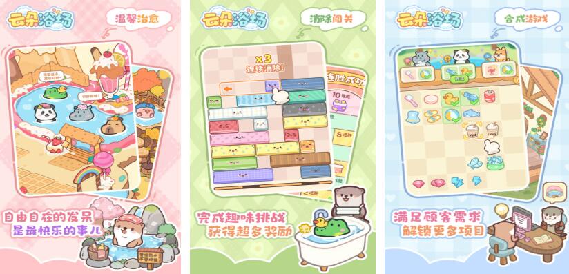 《云朵浴場》以其實獨特的玩法和溫馨的畫風受到很多玩家的喜歡,核心玩法就是接待顧客,解決顧客在洗浴中遇到的麻煩。躺平是游戲的宗旨,也是對玩家的治愈,畢竟自由自在發(fā)呆的時候是最快樂的。想要解鎖更多區(qū)域,升級建筑物的玩家還可以通過滑動屏幕的方式玩消除哦。