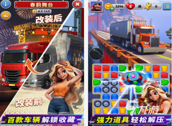 擁有著超多的消除關(guān)卡,既可在這里面感受卡車模擬游戲的特色,還結(jié)合了各個年齡段的玩家,都比較喜歡的三消闖關(guān)的特色。主要就是利用消除的方法,放松身心,還有機(jī)會使用強力的道具,對卡車進(jìn)行相應(yīng)的改裝。收錄的卡車數(shù)量有上百款,既能利用解鎖的方法收藏,其中還能與好友組隊的方式,進(jìn)行相應(yīng)的挑戰(zhàn)。