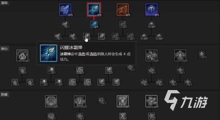 火法一般是指魔法使這個職業(yè)里的一種流派,火法雖然很暴力,但消耗法力值的非常高。因此一般初始會點出冰霜彈,看中的是下面分支部分的“閃耀冰霜彈”,命中凍傷或者凍結(jié)的敵人會給到4點法力。