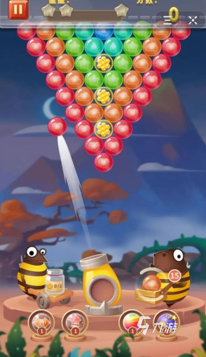 整個畫面真的是超軟萌,色調(diào)也相當?shù)淖屓烁杏X到舒服,你會跟著一只超有趣的小蜜蜂去到叢林里面進行冒險,而這里面的蜜蜂都會變成各種顏色的泡泡,你需要用自帶的泡泡發(fā)射器將它們進行收集,你需要瞄準相同顏色的泡泡來進行發(fā)射,這個過程就是收集的過程,玩起了一點都不費腦力。