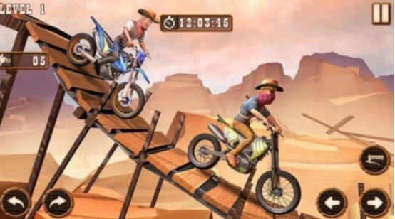 精致的游戲畫風以及簡單的操作方式,還營造出了輕松愉悅的游戲背景。美觀呈現(xiàn)出來的畫面都完全不同,屏幕上都有虛擬的控制按鍵,您可以通過左右點擊按鈕或者加速等多樣化的方式完成各種特技的競速任務,您需要穿梭在一望無際的沙漠中,或者需要駕駛著自己的山地車穿梭橋梁等等。