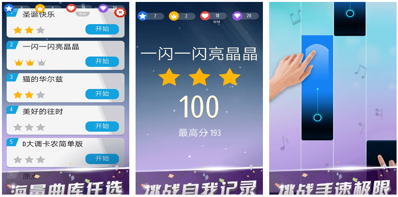 白塊鋼琴師是款靠點(diǎn)擊屏幕才能玩的音樂類游戲,游戲具有海量的曲庫和挑戰(zhàn)手速的玩法,你的任務(wù)就是根據(jù)音樂節(jié)奏不斷點(diǎn)擊黑色方塊,只要不碰到白色的區(qū)域就可以完美過關(guān),簡易的畫面風(fēng)格和簡單的點(diǎn)擊方式相得益彰,優(yōu)美的背景音樂也讓玩家覺得心曠神怡,辨識度極高的黑白畫面也讓人印象深刻,如果你也喜歡玩一些簡單的音樂游戲,那么下載白塊鋼琴師是明智的選擇。