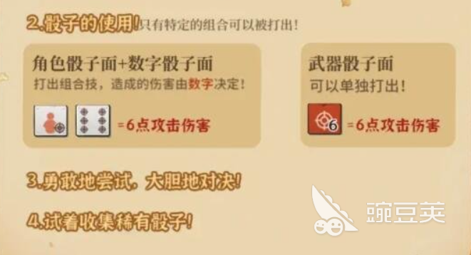骰子一共有三種顏色,分別是紅色,黃色和藍(lán)色對(duì)應(yīng)的效果分別是攻擊治療和防御角色,骰子和數(shù)字骰子必須要搭配起來(lái)使用,而武器骰子則必須單獨(dú)使用。當(dāng)?shù)?次拋出骰子之后,所出現(xiàn)的數(shù)字將會(huì)決定你本次能否打先手,如果說(shuō)你在備戰(zhàn)區(qū)里面打出了一個(gè)有效的組合,那么下方就會(huì)顯示出技能的名字,此時(shí)你需要再點(diǎn)擊一下這個(gè)技能才能夠順利使用。但如果說(shuō)本輪你投出來(lái)一個(gè)無(wú)效的組合,那么前面已經(jīng)投出來(lái)的有效組合也是不會(huì)受到任何影響的。
