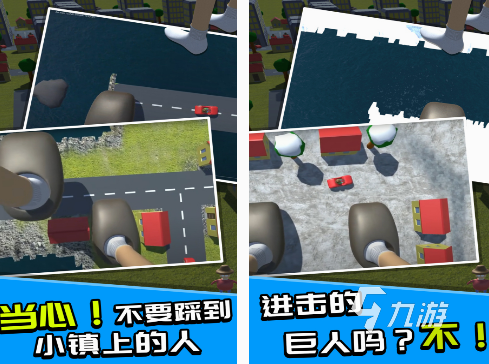 這款名字叫做巨人的游戲中,你將扮演游戲中的巨人,雖然并不會看到整個(gè)人的身體,只是以巨人的腳為主,但依舊能感受到所具備的獨(dú)特之處,非常龐大。主要的玩法就是你在游戲中由于腳特別的大,所以走路的時(shí)候一定要小心翼翼,不能踩到鎮(zhèn)上的人。為了帶給大家趣味性,這款充滿著荒誕又搞怪的模擬游戲中,也是沒有什么規(guī)則以及要求的,可做很多人類無法做的事情,還可破壞各種建筑。