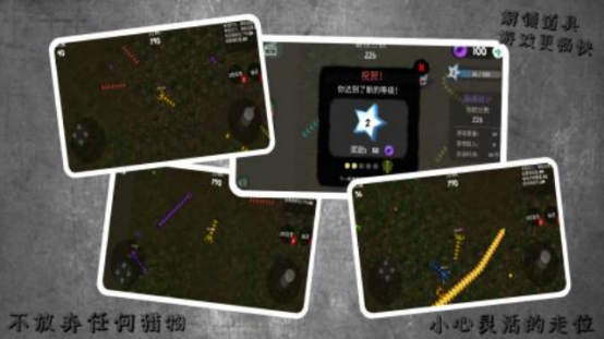 起初只有一條小小的蛇蛇,合理走位就可操控其中的蛇蛇將更多對(duì)手全部吃掉,從而讓自己也變得越來越長(zhǎng)。大家還要盡可能合理操控蛇,讓其他蛇和自己的身體發(fā)生碰撞,其次還包括很多炫酷的蛇的皮膚,比如有五彩繽紛的或者是有各種顏色的等等,只有順利操控才可成為整個(gè)戰(zhàn)場(chǎng)上的大boss。