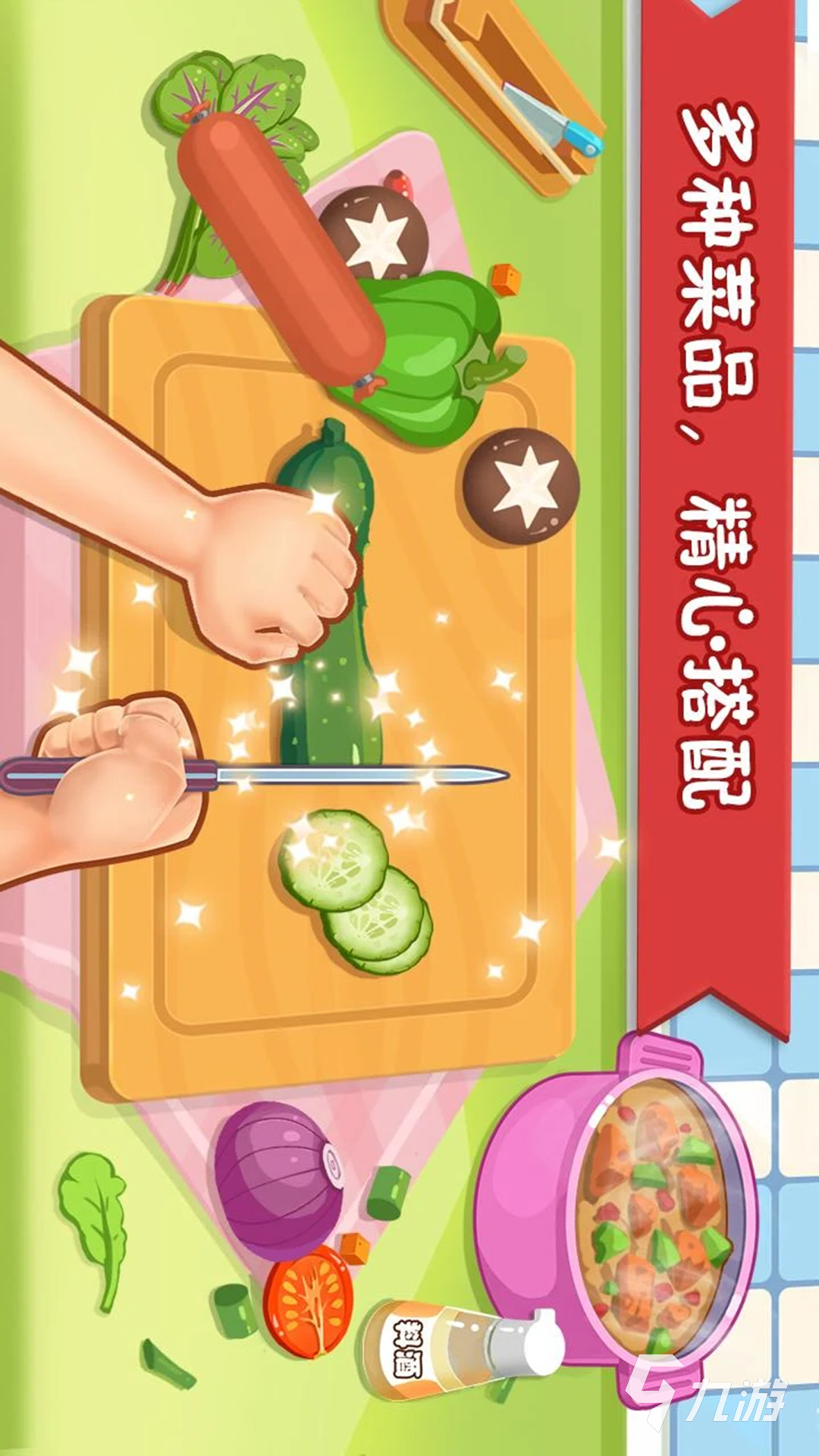 專為吃貨設(shè)計(jì)的DIY美食制作游戲,這里有來自世界各地的美味菜譜,如何將它們變成印象中的豪華大餐就要靠個(gè)人能力了,切菜手法很有講究,多練幾次才能把控好滑動(dòng)屏幕的力度,充滿奇思妙想的小小美食家們可以親手烹飪?nèi)魏蜗氤缘拿朗?,所有原料和工具一?yīng)俱全,就等你來施展廚藝才華了。