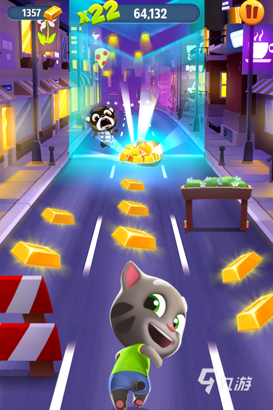會(huì)說(shuō)話的湯姆貓已經(jīng)準(zhǔn)備好跑步,討厭的浣熊搶走了所有的黃金,我們要操作湯姆貓去討伐回來(lái),加速、滑行、障礙通通都是我們要面對(duì)的事情,我們要盡全力去克服,去跑酷!