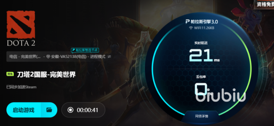 使用操作十分簡便,用戶下載并安裝客戶端后,登錄賬號并搜索Dota2選擇專區(qū),點擊加速即可一鍵接入優(yōu)化線路,整個流程順暢快捷,界面設(shè)計清晰直觀,適合不同年齡與操作習(xí)慣的玩家輕松使用。提速后平臺還提供實時網(wǎng)絡(luò)監(jiān)測功能,玩家可直觀查看延遲、丟包率等關(guān)鍵數(shù)據(jù),及時掌握加速狀態(tài)與網(wǎng)絡(luò)質(zhì)量。借助biubiu的專業(yè)服務(wù),無論是在普通匹配,還是參與官方賽事,玩家都能獲得更穩(wěn)定的網(wǎng)絡(luò)支持,全力發(fā)揮競技水平。