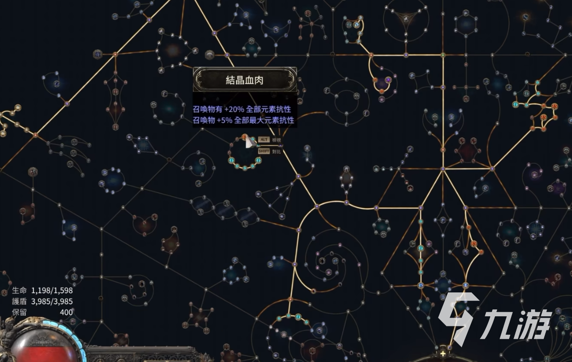接下來(lái)是升華選擇:忠誠(chéng)獵犬、變形肉體、貝達(dá)意志。這些天賦主要集中在提升召喚物的能力、增加召喚物的血量以及與磨礪相關(guān)的增益。例如,結(jié)晶血肉能夠增強(qiáng)召喚物的元素抗性,使它們?cè)诿鎸?duì)各種元素攻擊時(shí)更加堅(jiān)韌。除此之外,忠誠(chéng)獵犬提升了召喚物的攻擊性,而變形肉體則使召喚物的生命值和戰(zhàn)斗力得到了進(jìn)一步的提升,確保它們?cè)趹?zhàn)斗中更為持久。