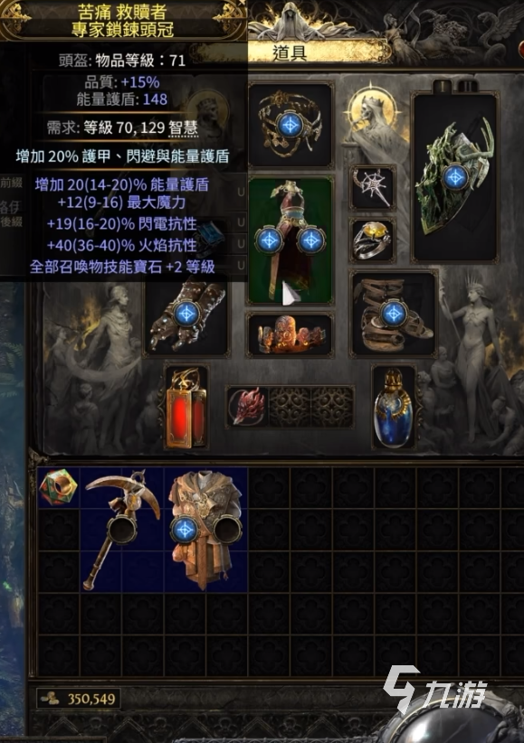 2、首飾。專(zhuān)家鎖鏈頭冠,帶兩個(gè)抗性,與其他裝備搭配就好。