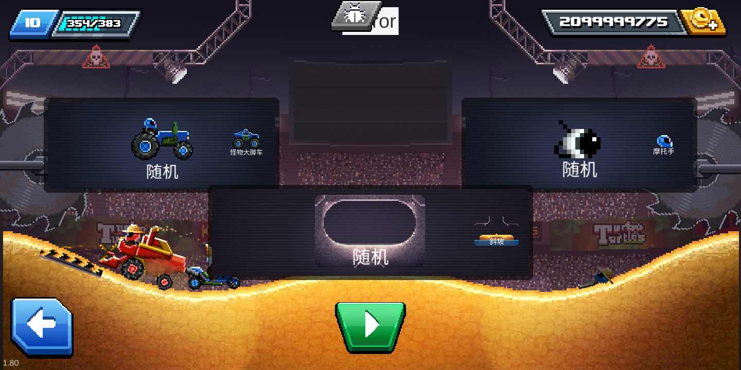 像素風(fēng)總是容易與低表現(xiàn)力掛鉤,這款游戲能夠顛覆大家對像素風(fēng)物理性能的刻板印象,游戲有著優(yōu)秀的物理碰撞,各種翻轉(zhuǎn),重力,加速,拆分,甚至是部件碰撞都做出了聲色犬馬的效果。游戲玩法簡單爽快,通常一局不超過10秒,馬上開始下一局,不用擔(dān)心會不盡興,游戲有任務(wù)競技場,山丘之王生存挑戰(zhàn)模式等多種模式,一場大的游戲要干翻一大堆的車子,一場比賽下來,你必須要完成急救車外形大、沖力強(qiáng)、車身穩(wěn)當(dāng),推土機(jī)能將對手的車鏟起,遇到小車的時候,不同的車輛有不同的特點。