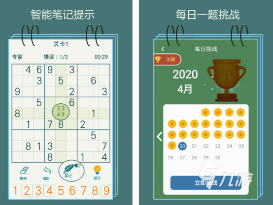 此數(shù)獨(dú)手游,同樣也是在此游戲當(dāng)中,熱度比較高的。整體以特別簡(jiǎn)約的風(fēng)格進(jìn)行設(shè)計(jì),在顏色上都是以簡(jiǎn)約的灰白色為主。雖然看上去只要在方格里面填寫(xiě)1~9這樣的數(shù)字,但是在真正填寫(xiě)的時(shí)候就可以知道,在保證每行每列,都不會(huì)有重復(fù)的情況下,也是要掌握相應(yīng)技巧的。對(duì)于孩子來(lái)說(shuō),經(jīng)常玩這樣的游戲當(dāng)然是非常好的選擇,能變得更聰明。
