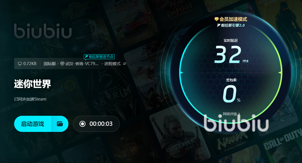 biubiu加速器不僅技術(shù)實力強大,用戶體驗也十分出色。它的界面設(shè)計簡潔,操作流程簡單,玩家只需幾步即可完成加速設(shè)置,無需繁瑣調(diào)試即可直接開啟加速功能。對于新用戶,biubiu提供了24小時的免費加速時長,方便玩家在無風險的情況下充分體驗加速效果。除此之外,玩家只需在兌換頁面輸入口令【biubiu不卡頓】,還能獲得額外72小時的免費加速服務(wù),使得長時間暢玩成為可能。加速器內(nèi)置的實時延遲監(jiān)控和網(wǎng)絡(luò)質(zhì)量檢測功能,也讓玩家能夠隨時掌握網(wǎng)絡(luò)狀況,靈活調(diào)整連接方案,避免因網(wǎng)絡(luò)異常導致的游戲中斷。