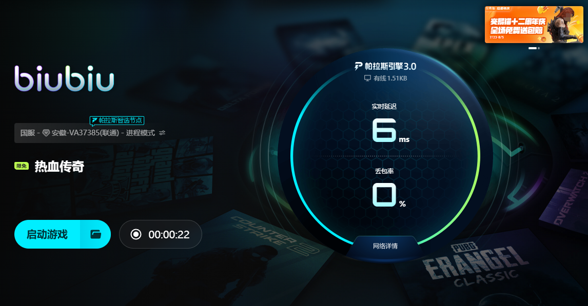 游戲自發(fā)布以來就具備超高的人氣,并且支持千人同屏競技,裝備的選擇也很是豐富,更是有著屠龍刀、霸業(yè)武器等給到大家,讓玩家能得到不錯(cuò)的體驗(yàn),只不過在實(shí)際戰(zhàn)斗期間,它對我們網(wǎng)絡(luò)方面是否穩(wěn)定有很高的要求,要是經(jīng)常掉幀的話,就會有技能打空等風(fēng)險(xiǎn),所以我們還要去打開biubiu來幫自己進(jìn)一步穩(wěn)定,如此才能確保長時(shí)間游戲下的順滑效果。