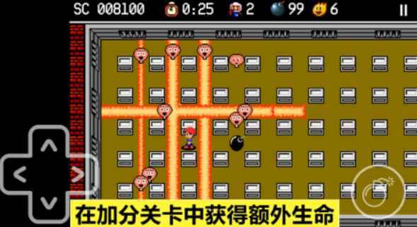 炸彈人歷險(xiǎn)記這個(gè)游戲里,玩家被指控成搶劫犯,需要桃林監(jiān)獄找到壞人,這樣才能證明自己的清白,游戲開始之后會(huì)有大量的壞人出現(xiàn)在場(chǎng)景里,玩家需要做的就是在這里放置炸彈,每個(gè)炸彈倒計(jì)時(shí)結(jié)束之后都會(huì)成十字形爆炸,這樣在這些路線上的對(duì)手都會(huì)被消滅,玩家需要不斷收集炸彈,并且通過(guò)釋放炸彈消滅所有的對(duì)手,里面會(huì)總共設(shè)定40多個(gè)關(guān)卡,玩家只需要通過(guò)簡(jiǎn)單的組合炸彈放置,就能完成游戲里的考驗(yàn)。