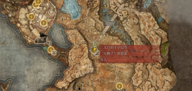 從賜福點(diǎn)三叉口的十字記號這里出發(fā),可以看到左上角是有一個接近圓形的湖泊,朝著這里騎馬前進(jìn)即可。在主路兩邊是分布一些怪物的,如果不想跟它們對戰(zhàn),就可以拉遠(yuǎn)一點(diǎn)距離跑圖。