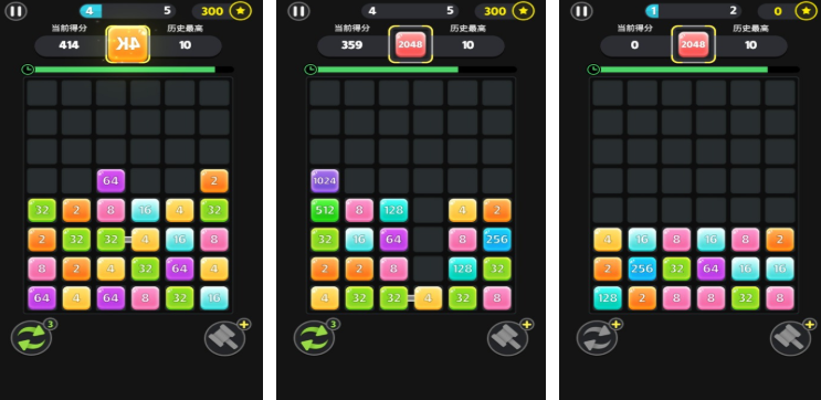 《數(shù)字合不?!愤@款游戲的核心玩法就是2048,可以通過移動棋盤上的數(shù)字來進(jìn)行疊加,直到組成2048為止。手游提供了4×4和5×5兩種棋盤,不同的棋盤難度不同,新手玩家應(yīng)該遵循從左往右,從上到下的原則,為后續(xù)的合成預(yù)留足夠的空間。除經(jīng)典玩法外,游戲內(nèi)還有比較刺激的模式,限時挑戰(zhàn)和線步數(shù)挑戰(zhàn)。游戲操作簡單,界面簡潔明了,數(shù)字合成方式也流暢,視覺體驗感良好。