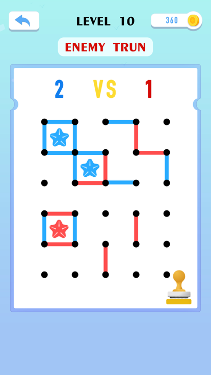 《一筆封神》游戲采用了連線結合對戰(zhàn)的玩法設計,頗具有圍棋的神韻,游戲中我們需要通過劃線來包圍對方的區(qū)域,逐漸蠶食對方的地盤進行得分,游戲運用了滿屏的黑點對地圖進行了對稱的設計,兩位玩家要要展開劃線比拼來圈起數(shù)字作為自己的得分區(qū)域,運用了紅藍的色彩對雙方的顏色進行了標注,在過程中與對方的線體進行交叉重合,區(qū)域則自動規(guī)劃給另一位玩家。