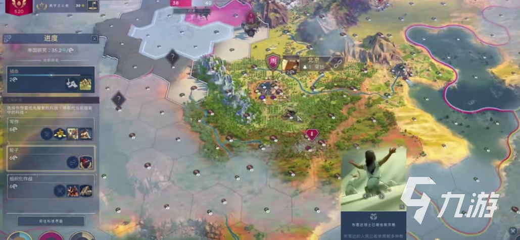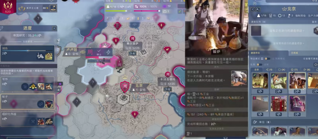 在這里玩家們一點要把減五十的前哨影響力市政給點出來,因為在這個市政的加持下,古典結(jié)束了之后,玩家們基本上就可以把所有的地都給圈起來了。