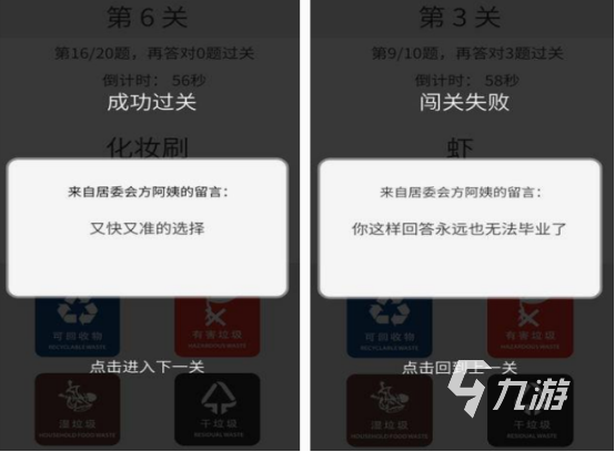 這款以闖關(guān)為玩法的記憶游戲,以垃圾分類這樣的內(nèi)容為主,居委會(huì)的方阿姨,為了讓更多的人通過游戲的方式,來了解垃圾分類的正確方法,通過自學(xué)編程的方式,制作成了與此有關(guān)的內(nèi)容。而玩家在玩的過程中,也能通過不斷對垃圾進(jìn)行訓(xùn)練,來挑戰(zhàn)記憶力甚至是反應(yīng)力。過的關(guān)卡數(shù)量越多,自己的實(shí)力也會(huì)越強(qiáng),一共有130個(gè)關(guān)卡。