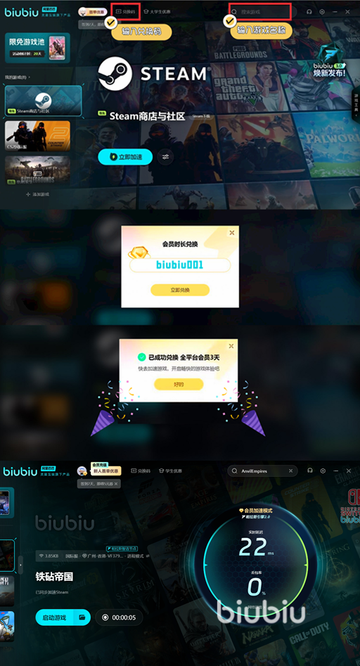 不過作為一款大型的pc端游戲,玩家必須擁有一個(gè)加速器能夠讓網(wǎng)絡(luò)穩(wěn)定運(yùn)行,biubiu游戲加速器目前在舉行福利活動(dòng),新人玩家注冊成功后,可免費(fèi)解鎖24小時(shí)加速時(shí)長,再通過biubiu001這個(gè)兌換碼,可再獲得三天加速時(shí)長,96小時(shí)讓你體驗(yàn)極致流暢的操作。