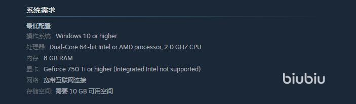 目前對于操作系統(tǒng)的最低要求為Windows 10,如果你有更好的處理器,在畫質(zhì)上也會(huì)有更棒的體驗(yàn)。