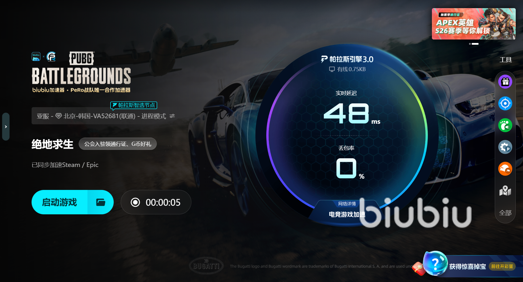 如果你正在尋找靠譜的絕地求生加速器推薦,不妨試試biubiu加速器。它能幫助你穩(wěn)定網(wǎng)絡(luò)、降低各種突發(fā)問題的發(fā)生率,讓你在槍戰(zhàn)與戰(zhàn)術(shù)博弈中發(fā)揮真正實(shí)力,不再因網(wǎng)絡(luò)問題錯(cuò)失勝利機(jī)會(huì)。