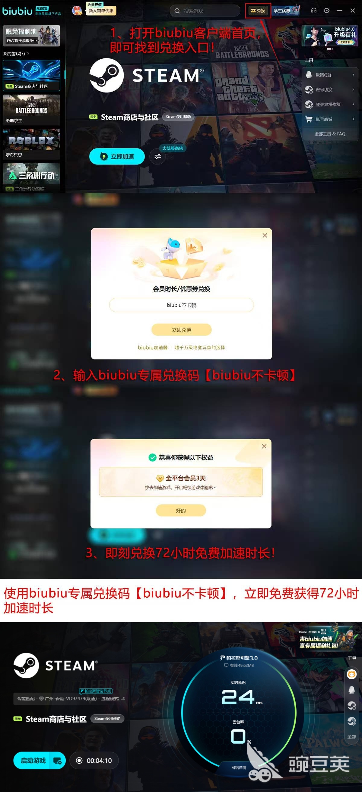 【biubiu不卡頓】專屬口令現(xiàn)已開放使用,所有玩家均可通過該口令領(lǐng)取三天免費試用時長,新用戶完成注冊后還可額外獲得24小時加速服務,總計享受96小時即四天的完整體驗期,幫助初次接觸該加速工具的用戶無憂暢玩Bloodgrounds及其他在線游戲。