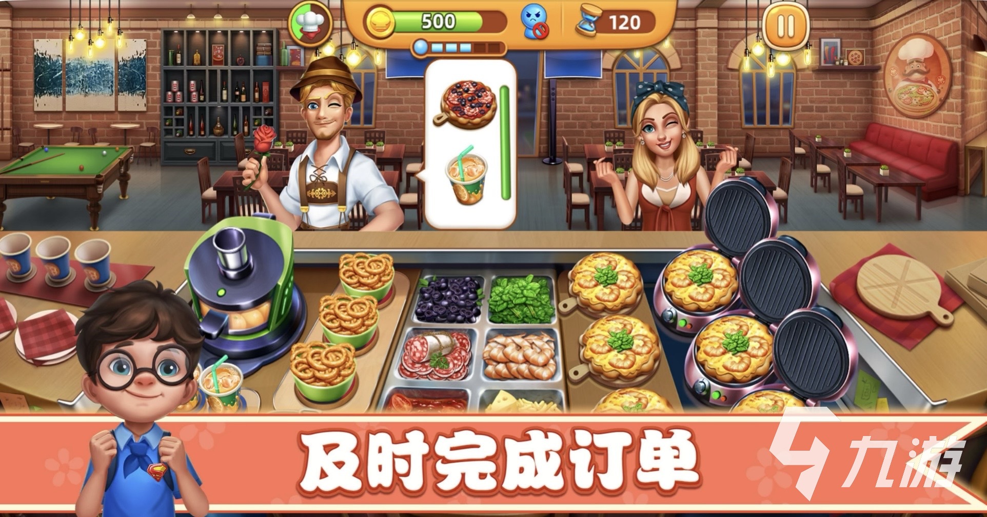 《小鎮(zhèn)大廚》在這里,你將化身成為一名廚師,為顧客烹飪出美味佳肴是你的心愿?!缎℃?zhèn)大廚》由一個個小關卡組合而成,在每一個關卡當中,都會有與之相對應的要求,達到要求即為過關反之則為失敗。游戲開始后,會有計時模式隨之開啟,在這個時間內(nèi)會有不同的顧客出現(xiàn),玩家則要完全按照顧客的要求為他們制作食物,顧客滿意就會獲得相對應數(shù)量的金幣,這些金幣可以幫助玩家去拓展更多店面,賺取更多的收益。