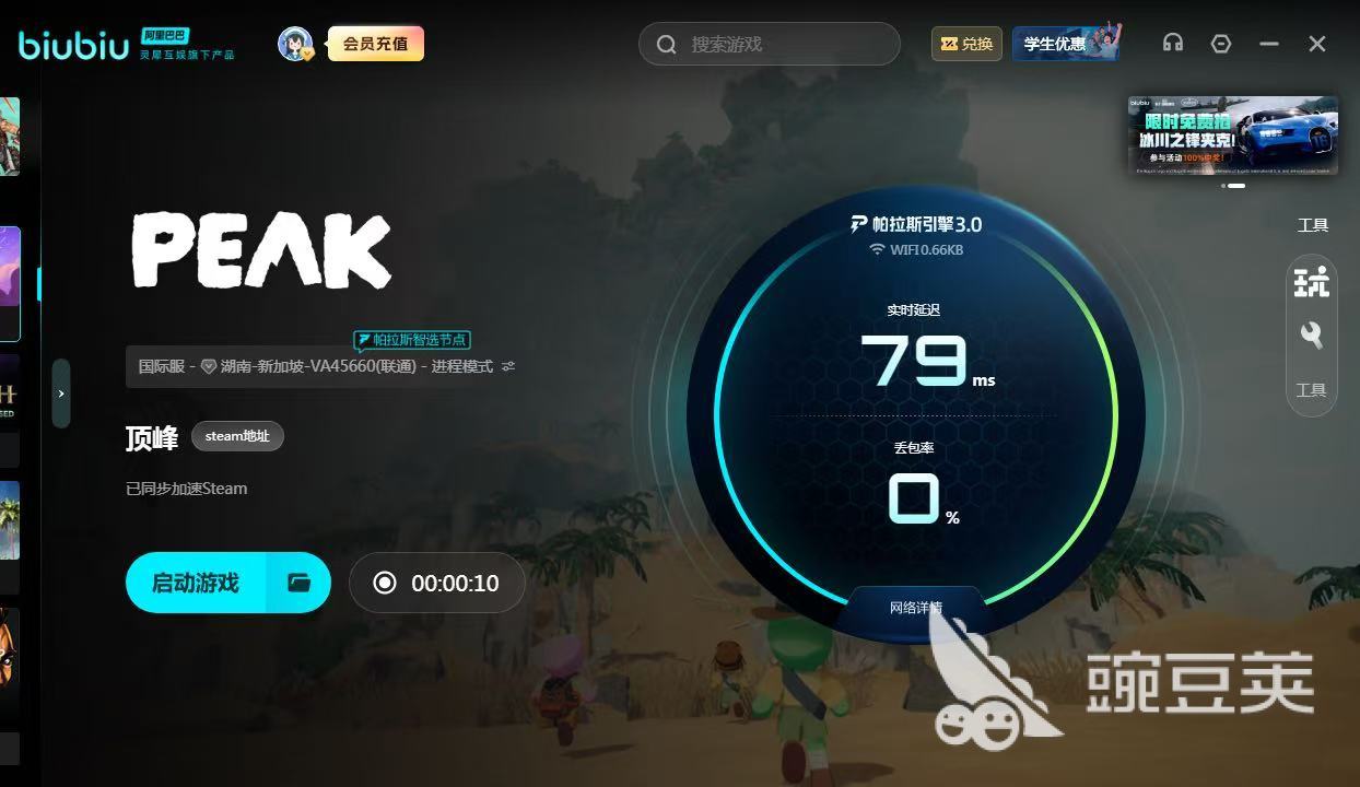 總體來(lái)看,《peak》自上線(xiàn)以來(lái)長(zhǎng)期位居熱門(mén)榜單,其融合策略與動(dòng)作元素的獨(dú)特設(shè)計(jì)吸引了大量玩家。但高人氣也帶來(lái)了服務(wù)器壓力,部分用戶(hù)可能出現(xiàn)延遲或畫(huà)面不流暢的情況。通過(guò)使用如biubiu這類(lèi)專(zhuān)業(yè)加速工具,可顯著改善連接質(zhì)量。建議玩家在開(kāi)啟游戲前,先完成加速設(shè)置,并領(lǐng)取免費(fèi)加速時(shí)長(zhǎng),以獲得更順暢的攀登體驗(yàn)。