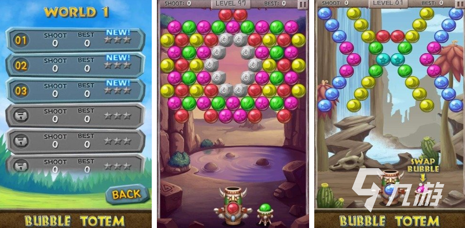 這款游戲也是很經(jīng)典的消除類型游戲之一。但是它的玩法又與消除類的玩法有所不同,它是需要玩家通過發(fā)射炮彈去進(jìn)行消除,不同的顏色炮彈能消除不同顏色的泡泡,所以玩家需要有很好的預(yù)判力,每個(gè)關(guān)卡里面都有不一樣的泡泡陣型,這里有特別多的關(guān)卡你能逐一的去挑戰(zhàn)。