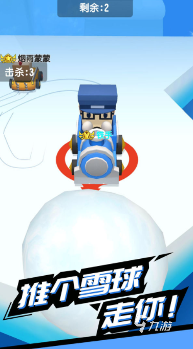 坐在鏟雪車上的玩家,將鏟起來的雪堆成雪球,同時(shí)控制著雪球?qū)⒁u來的對手都給打敗。打敗的對手越多,自己雪球的體積也就越大。