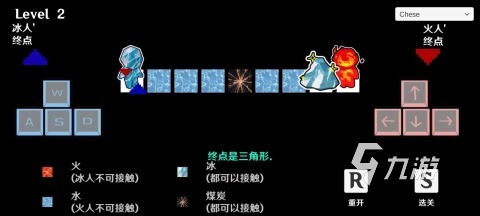 大家將會在冰與火的對立中,展開各種非常精彩刺激的冒險活動。比如說玩家需要通過控制火人穿越結(jié)冰的通道,或者是通過控制冰人,然后將水面結(jié)冰。游戲的玩法是非常具有趣味性的,大家需要進行合理的規(guī)劃,才能夠順利的通關(guān),而且各種操作也比較直接,直接點擊屏幕上的冰人和火人就可以了。