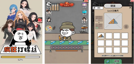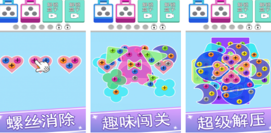 快捷在操作,多樣化特色玩法結(jié)合解壓體驗與競技元素,每個關(guān)卡都有不同工廠場景,也有相應(yīng)的螺絲排列方式,難度也會逐步提升,為了增加游戲的挑戰(zhàn)性,加入了時間限制干擾等多種選項。將卡通與雪石畫風(fēng)相結(jié)合,部分場景擁有足夠精致的設(shè)計與魔性營銷。