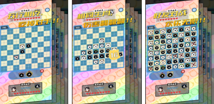 很多人都比較喜歡五子棋,主要是因?yàn)槲遄悠宸浅e憻捦婕业哪X力,五行生肖五子棋設(shè)定了一個(gè)非常有趣的五子棋盤,在這里采用的不再是單純的下棋玩法,玩家需要通過點(diǎn)擊的方式,讓棋盤上的這些生肖翻轉(zhuǎn)過來,下方的生肖位置是隨機(jī)的,大家需要不斷制定策略,調(diào)整順序,盡可能多的讓自己翻過來的生肖,可以出現(xiàn)5個(gè)連續(xù)相同的。