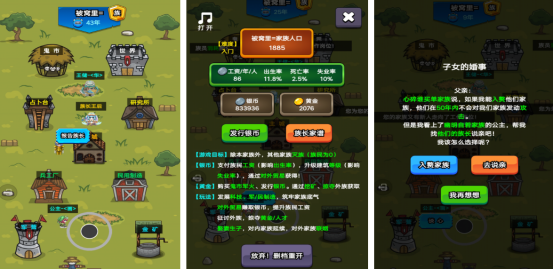 可玩性極強(qiáng)的玩法,在開局之后,玩家就需要利用自己的智慧創(chuàng)建屬于自己的家族,作為老祖宗的你,需要按照自己的智慧以及思路來發(fā)展自己的家族產(chǎn)業(yè),還需要用心去經(jīng)營自己的家族,讓整個(gè)家族未來走向越來越好。在偌大家族發(fā)展的過程當(dāng)中,每一次的決定都掌握在自己的手中,您也需要利用自己的一生經(jīng)歷延續(xù)生活,讓自己的家族越來越龐大。