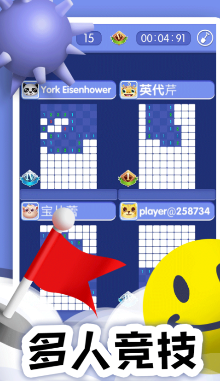《掃雷 online 》可以看作是對原版掃雷的一個現(xiàn)代化升級版本,在這當中你會有一種濃濃的網(wǎng)上的比賽感覺,你可以和其他國家的小伙伴同臺競賽,每一局中你能看到來自各個地方的朋友都在搶時間地去點擊雷區(qū)里藏著的雷,并且進階內(nèi)容還特別好玩,各種小細節(jié)讓它整個游戲更加有趣味性,在掃雷的時候你得要小心你的對手會怎么做,在雷區(qū)內(nèi)進行探索時也要防備著對方是不是也想從這里拿到勝利的機會。