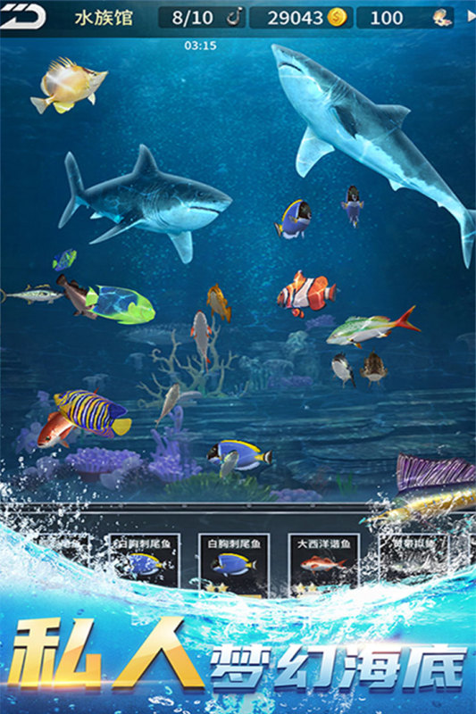 休閑模擬的玩法感受就是可以從這里被大家所見(jiàn)到的,絢麗的畫(huà)面效果再加上3D的元素設(shè)定是很有必要的,游戲中舒適上手的玩法感覺(jué)可以讓我們更多的參與者體驗(yàn)到樂(lè)趣,《釣魚(yú)達(dá)人》這款手游里面會(huì)有專(zhuān)門(mén)的水箱養(yǎng)殖的玩法,輕松的將自己垂釣上來(lái)的魚(yú)拿去出售換取相應(yīng)的金幣。