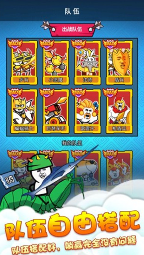 表情包就是玩家作戰(zhàn)的主要對象,游戲中的對戰(zhàn)類型有好多,可以使用豐富的表情包兵種來戰(zhàn)斗,游戲的畫風(fēng)采用的卡通畫風(fēng),每個(gè)表情都非常地魔性讓玩家的游戲體驗(yàn)歡樂不停。每個(gè)士兵的臉上都是各種各樣的表情包,操控他們進(jìn)行戰(zhàn)斗體會擺兵布陣的戰(zhàn)術(shù)對抗,在不同的戰(zhàn)斗中玩家需要合理搭配表情包的士兵,還可以強(qiáng)化士兵們的實(shí)力更加容易防守和進(jìn)攻。