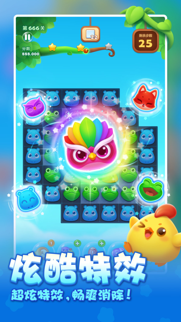 《開心消消樂》設(shè)定了特別快樂的經(jīng)典消除玩法,讓玩家在忙碌或者閑暇時(shí)光之時(shí),進(jìn)行放松體驗(yàn),提供的消除關(guān)卡多達(dá)上百個(gè),并且每個(gè)關(guān)卡都有著有趣音樂,其中的方塊看起來也特別呆萌,廣大玩家10分喜歡來體驗(yàn),并且每一次通關(guān)成功,就會(huì)有更多驚喜獎(jiǎng)勵(lì),分?jǐn)?shù)越高,則能夠使用它來兌換讓你更加快速闖關(guān)的道具哦。