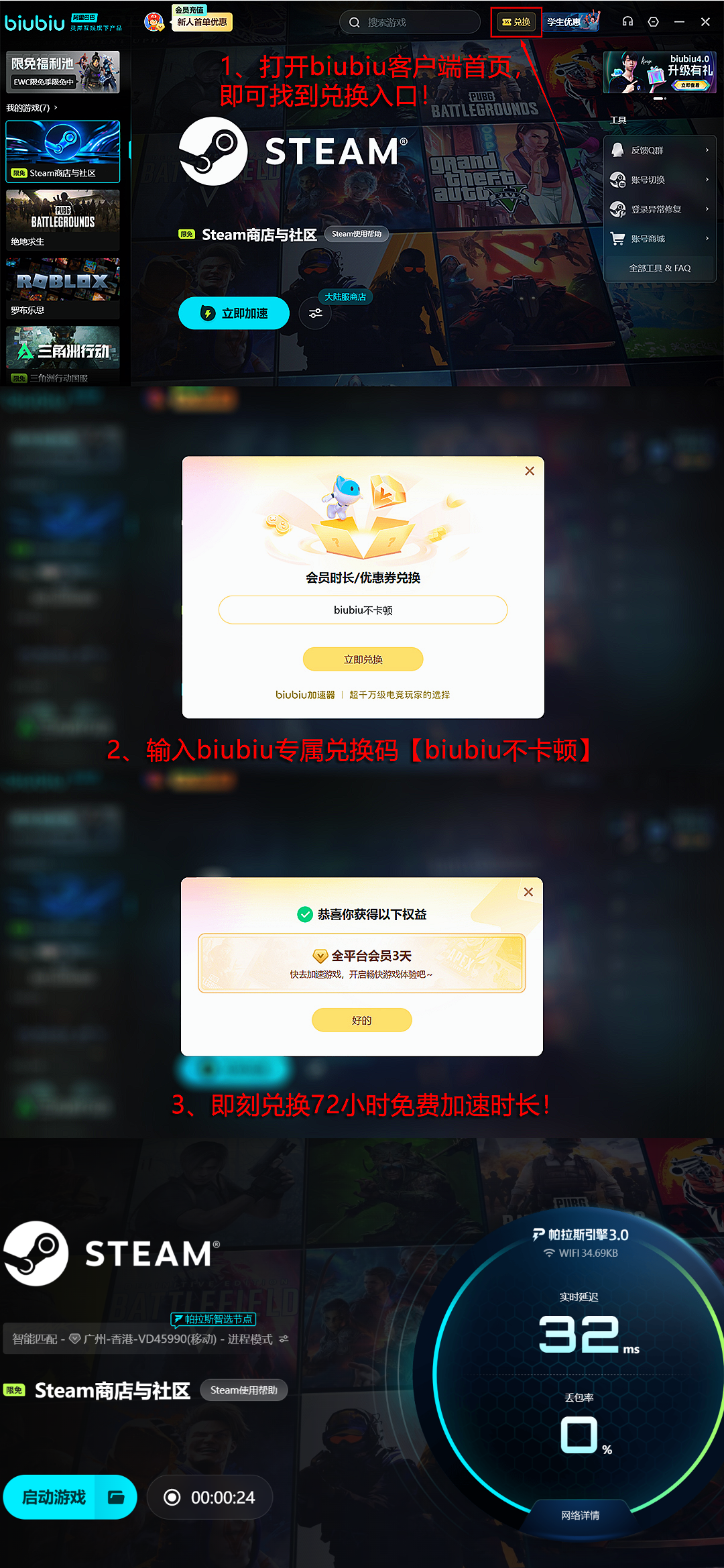 如果玩家們想要游玩這個(gè)游戲的話可以選擇到steam平臺(tái)下載,若登錄時(shí)出現(xiàn)卡頓、頁(yè)面加載延遲等問題,可以使用biubiu加速器。新人注冊(cè)后獲得24小時(shí)免費(fèi)加速時(shí)長(zhǎng),能讓加速體驗(yàn)更好一些;新老用戶用兌換碼【biubiu不卡頓】,還能額外領(lǐng)取3天免費(fèi)使用權(quán)。同時(shí)加速器經(jīng)過重磅升級(jí)引入的帕拉斯引擎3.0,以及邀請(qǐng)冠軍選手Aixleft參與打造,對(duì)于地圖的加載速度也會(huì)有顯著幫助,有效減少地圖切換時(shí)的等待時(shí)間,讓玩家們快速稱霸各個(gè)地圖。