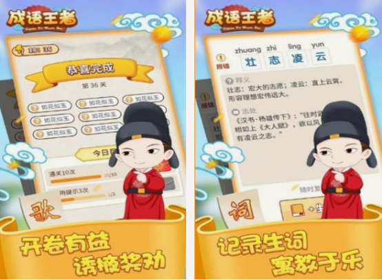 由于僅給大家找到了上方,融入了成語接龍玩法的,接下來盤點,與四字成語有關(guān)的幾款游戲吧。