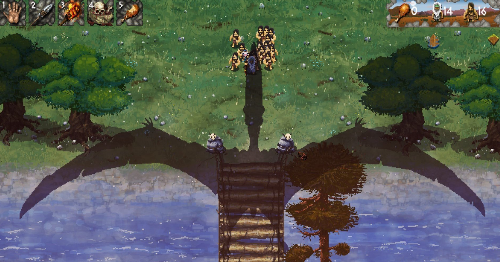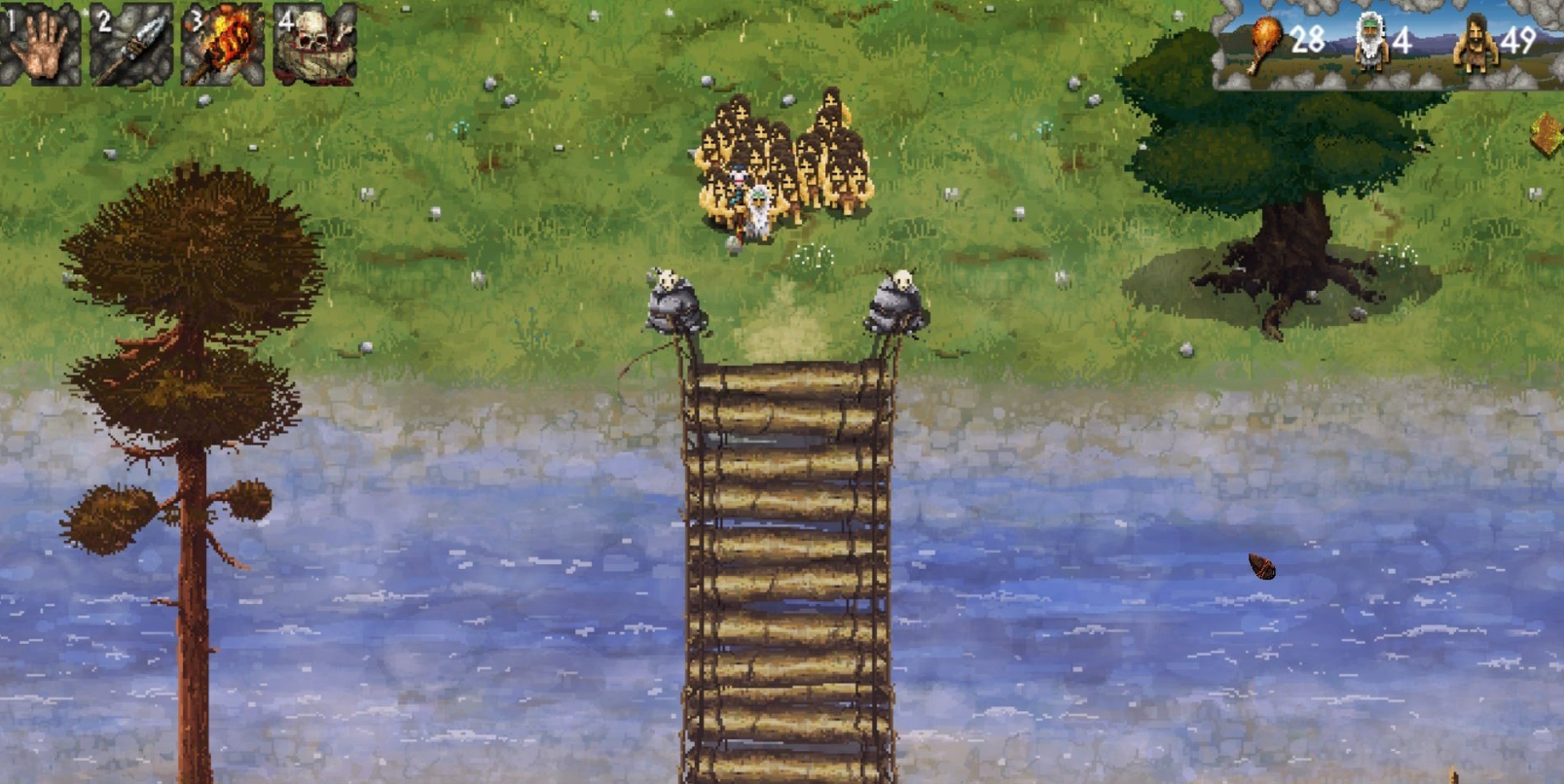 在遷移途中更是要持續(xù)去采集食物、獵殺動物,并合理分配資源維持人口增長,當(dāng)食物匱乏時甚至可能犧牲部分成員以確保整體存續(xù),每次游戲的路線均為動態(tài)生成,增加了超多的不確定性,玩家得實時適應(yīng)地形變化,遇到湖泊或河流時需搭建橋梁調(diào)整站位,面對猛獸則要運用技能捕獵。