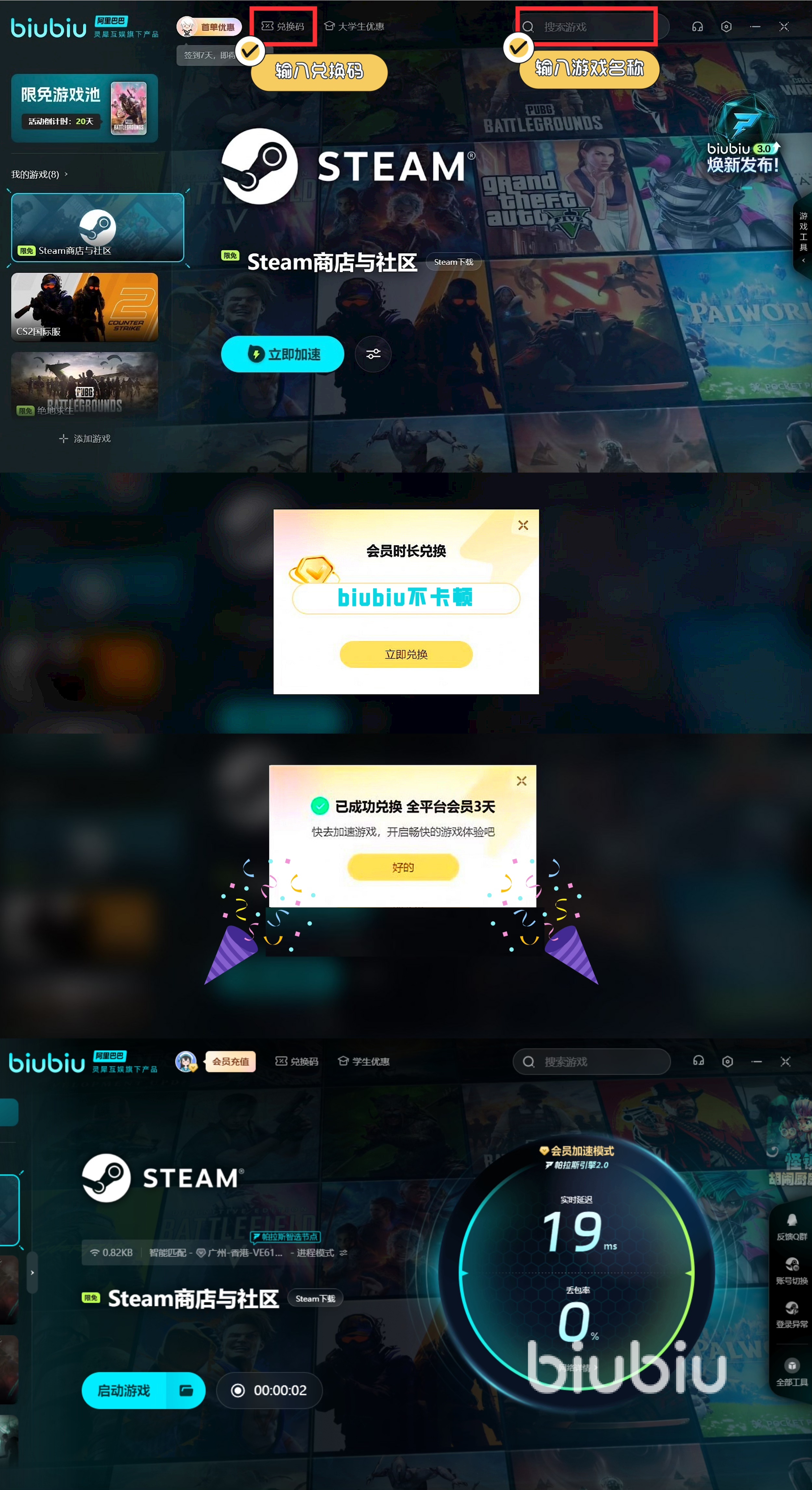 然后biubiu目前有一些免費(fèi)加速福利,例如新人可領(lǐng)取3小時(shí)的免費(fèi)加速。然后新老用戶輸入【biubiu不卡頓】,就能額外獲得三天免費(fèi)加速。讓你在新的都市中繼續(xù)開始光怪陸離的離奇生活,并發(fā)現(xiàn)不一樣的校園都市傳說。并逃離最終的異空間,從各種危機(jī)中幸存下來。