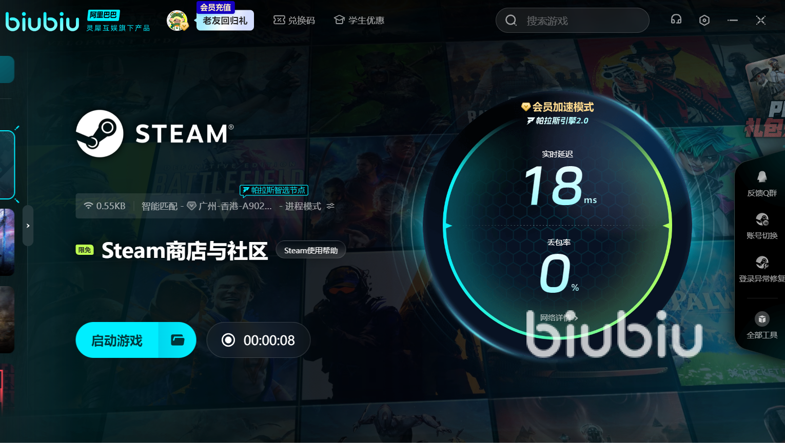 有一部分玩家是比較熱衷于聯(lián)機(jī)作戰(zhàn)的,這樣在戰(zhàn)斗的時(shí)候會(huì)提高整體的容錯(cuò)率,不至于到后期被敵方boss殺死有需要重新來(lái)過(guò),但是聯(lián)機(jī)對(duì)于網(wǎng)絡(luò)的支持還是比較高的,一旦聯(lián)機(jī)中途卡頓會(huì)影響游戲?qū)?,剛好biubiu是能有效提高聯(lián)機(jī)網(wǎng)絡(luò)的,即便是國(guó)際服以及外服,也是能全方位支持的。